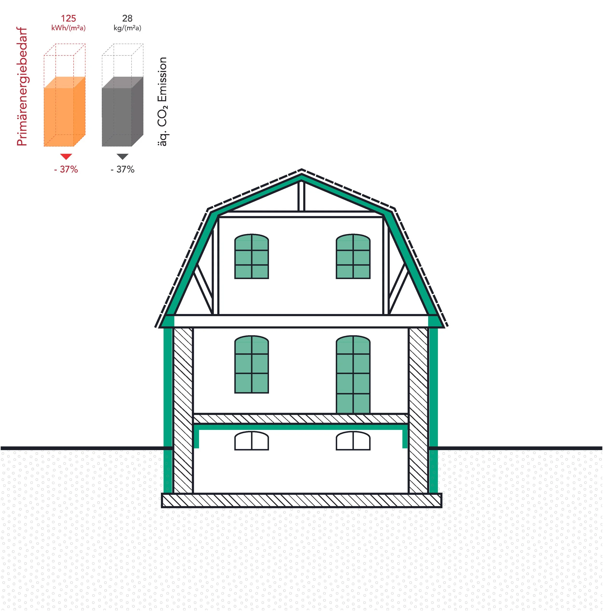 Im Folgenden ist eine beispielhafte Abfolge von energieeffizienten Sanierungsmaßnahmen dargestellt